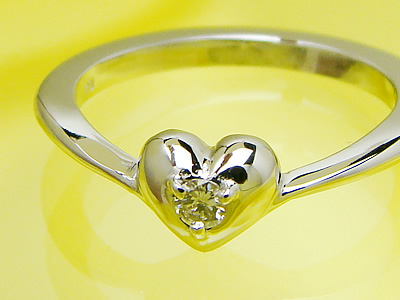 刻印のできるサイズの大きなハートのベビーリング/K10ホワイトゴールド【ダイヤモンド】