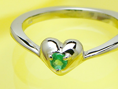 刻印のできるサイズの大きなハートのベビーリング/プラチナ【エメラルド】